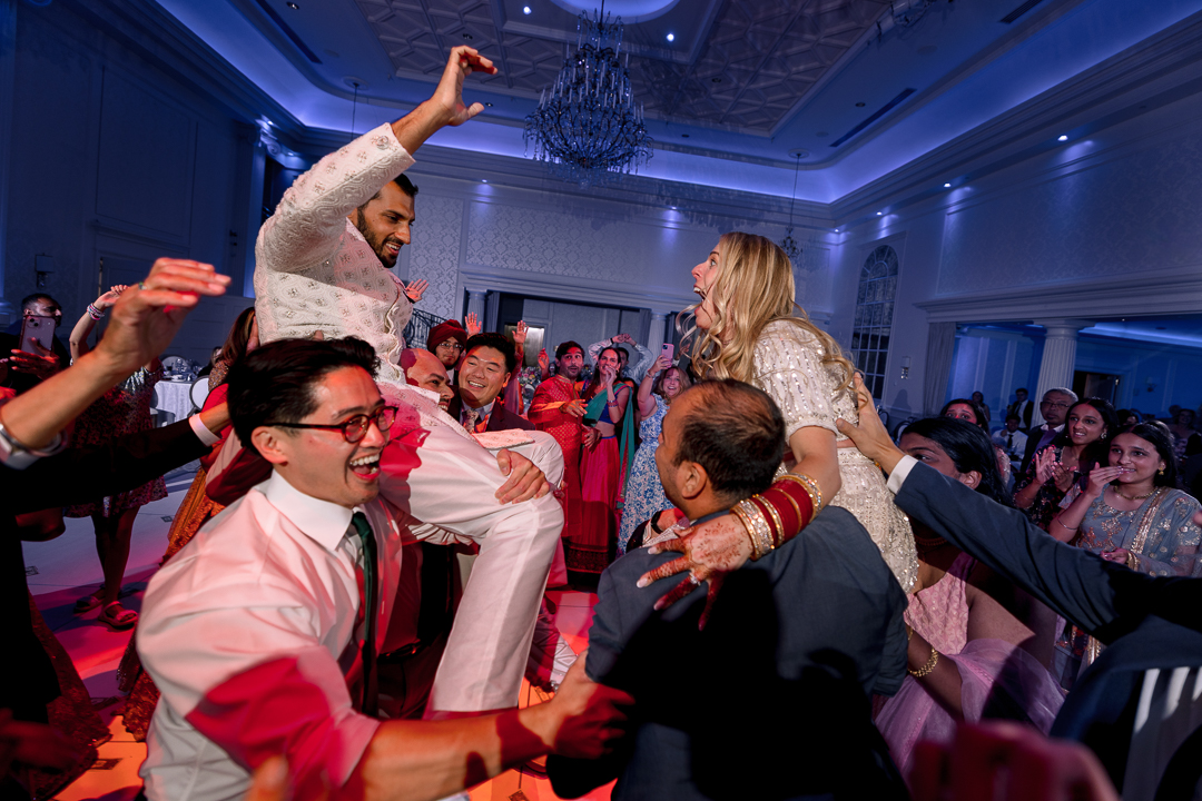 Oh my goodness, wait until you see the dance floor — money flying, Bollywood choreography, and a celebration that literally lifted the bride and groom
